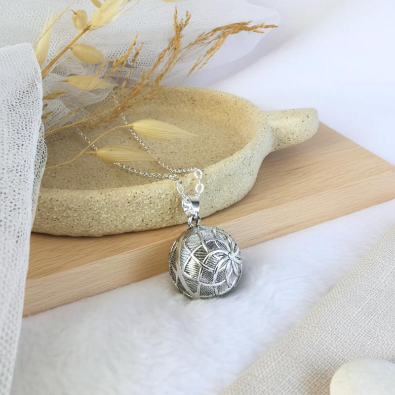 Loupita vous propose ce bola de grossesse en plaqué argent qui saura s'accorder avec toutes vos tenues. Son élégance et ses détails