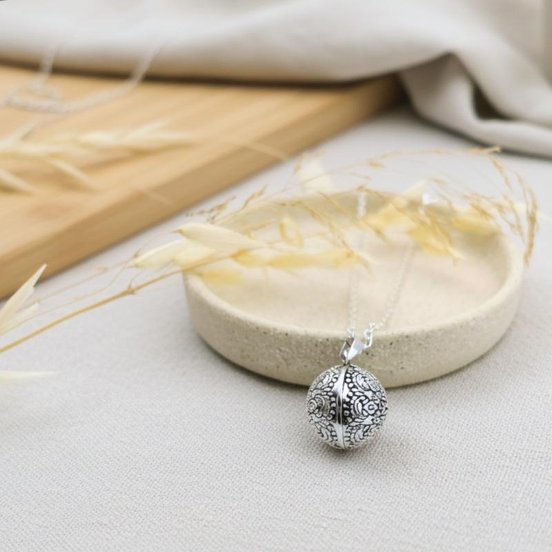Loupita vous propose ce bola de grossesse en plaqué argent qui saura s'accorder avec toutes vos tenues. Son élégance et ses détails